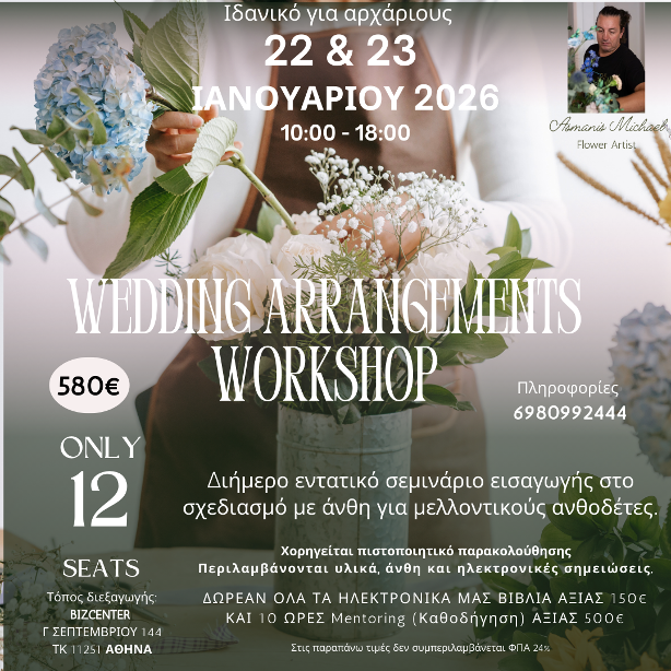 Τα πιο χρήσιμα μαθήματα που έχω κάνει! Μαθήματα γεμάτα ενδιαφέρον, οι τέσσερις ώρες περναγαν απίστευτα γρήγορα, τόσο απολαυστικά! Έχω μάθει αμέτρητα πράγματα για την ανθοδετική, ανθοστολισμος γάμου, βάπτισης, διαφήμιση, ραντεβού με πελάτες, τιμολόγηση. Και το πιο σημαντικό ? Χρήσιμα και μυστικά κόλπα γι αυτο το επάγγελμα, τα οποία οι γνώστες δεν αποκαλύπτουν εύκολα.